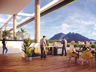 Una de las características más destacadas de esta torre es su último piso, que alberga una gama excepcional de amenidades diseñadas para elevar tu calidad de vida. Imagina disfrutar de un chapuzón en una alberca con vistas panorámicas de la ciudad. También puedes organizar reuniones al aire libre en las áreas de asadores. O permitir que tus hijos se diviertan en el área de juegos infantiles. También puedes mejorar tus habilidades de bateo en la máquina de bateo. Además, también es posible utilizar el área de coworking.