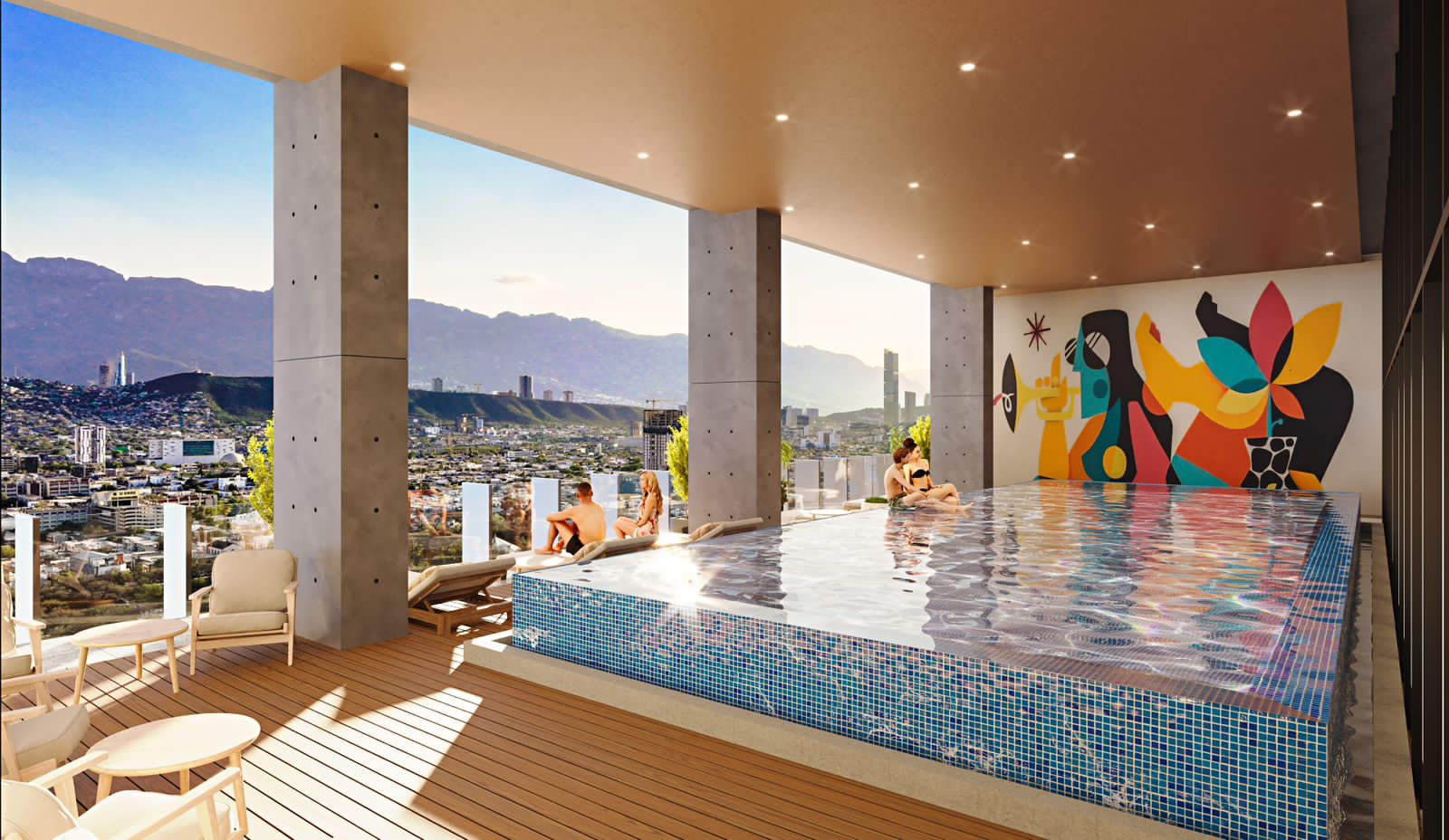 - Comunidad y Entretenimiento: La Terraza, asadores, Open Kitchen, Sport Bar, Music Room, Salón de Eventos.