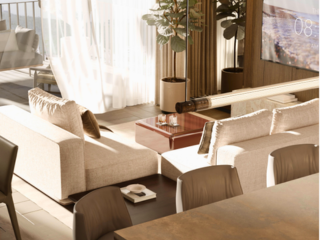 Es una torre de solo 5 niveles y dos sótanos. Todos con terrazas. Arquitectura e interiorismo de primera.