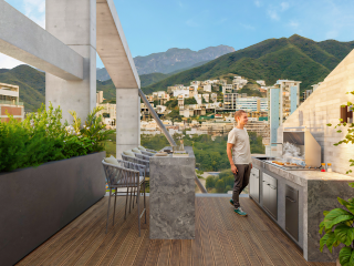 • Vistas: Tendrán también, terrazas con vistas panorámicas al skyline de Monterrey y, adicionalmente, a las montañas circundantes.
